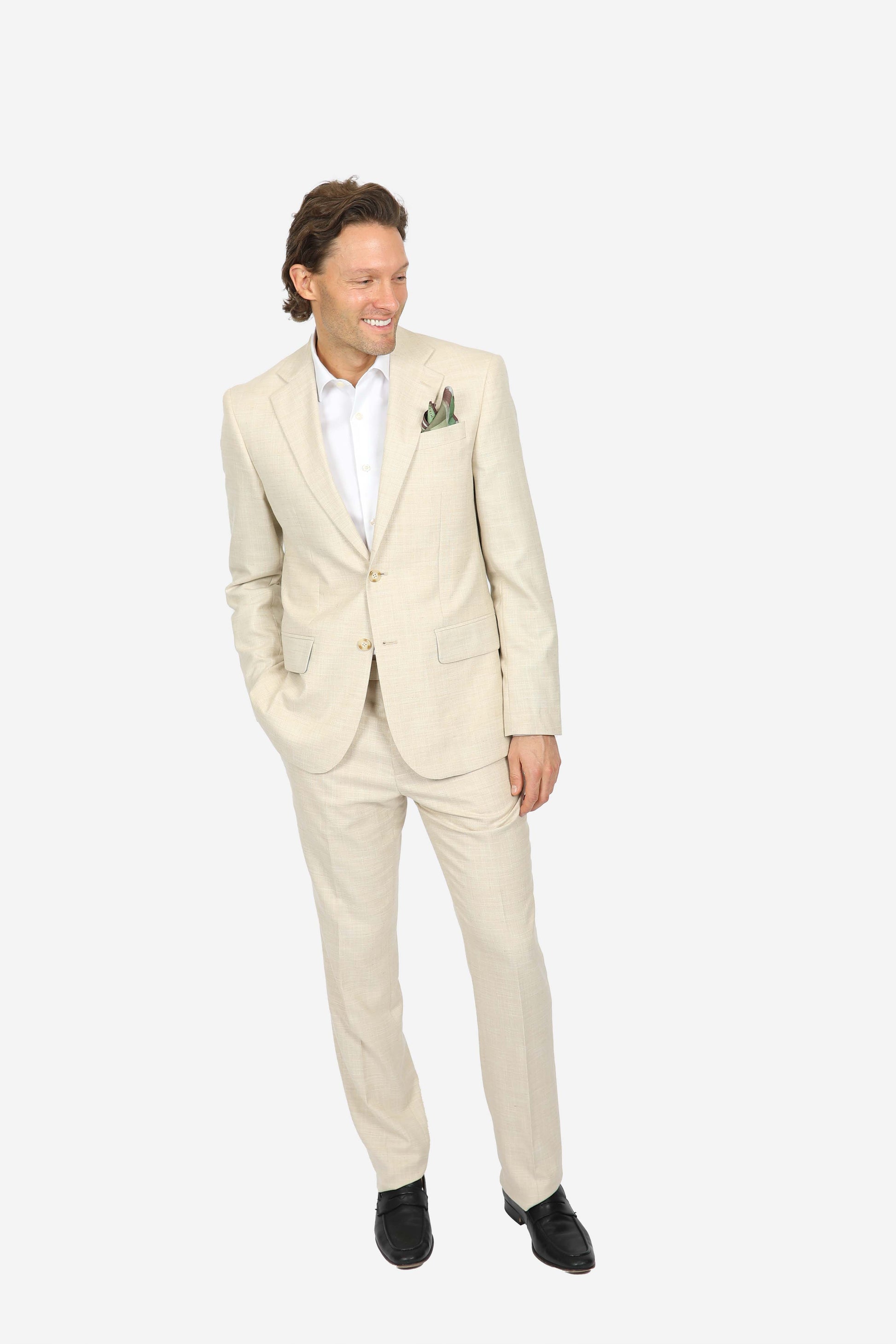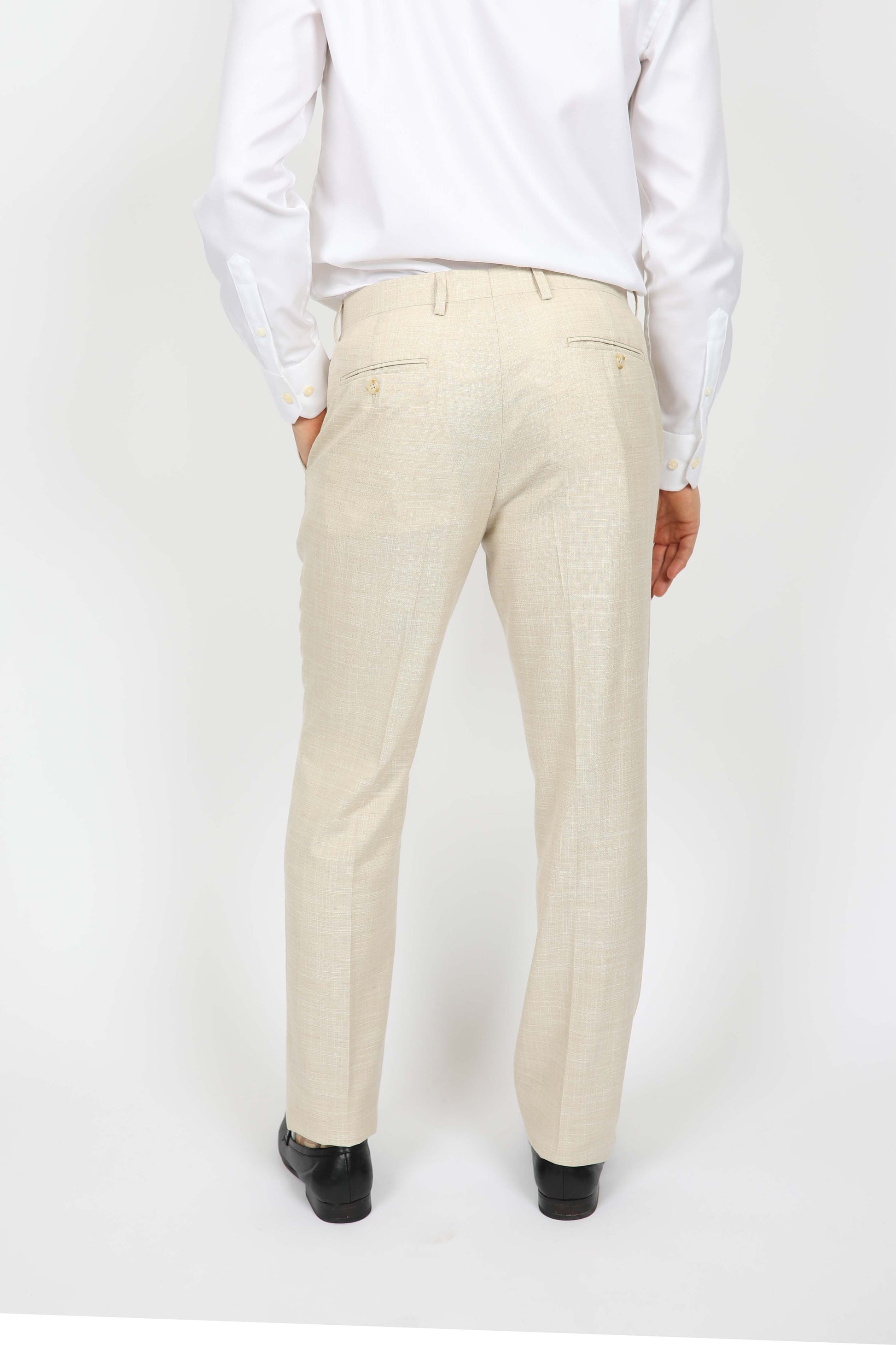 This suit trouser is made from naturally breathable fibres including wool, bamboo, linen and silk and is half lined,. Summer becomes suit season when these fibres unite to bring cool comfort with style.