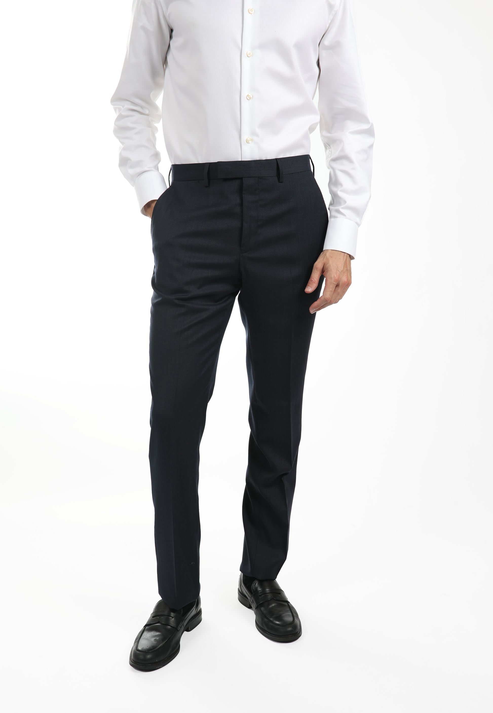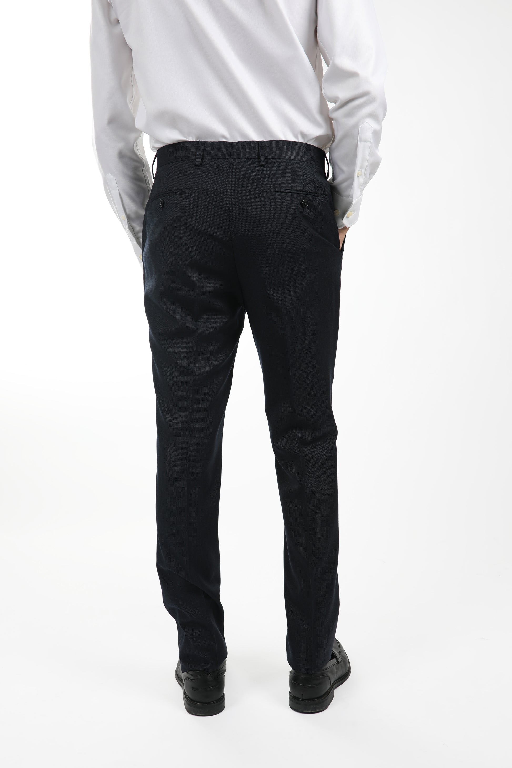 Enjoy year-round comfort in natural, breathable, pure new wool.The navy check birdsyesuit trouser is crafted from a resilient Virgin Wool Super 120s weave fabric with excellent drape and soft hand feel.