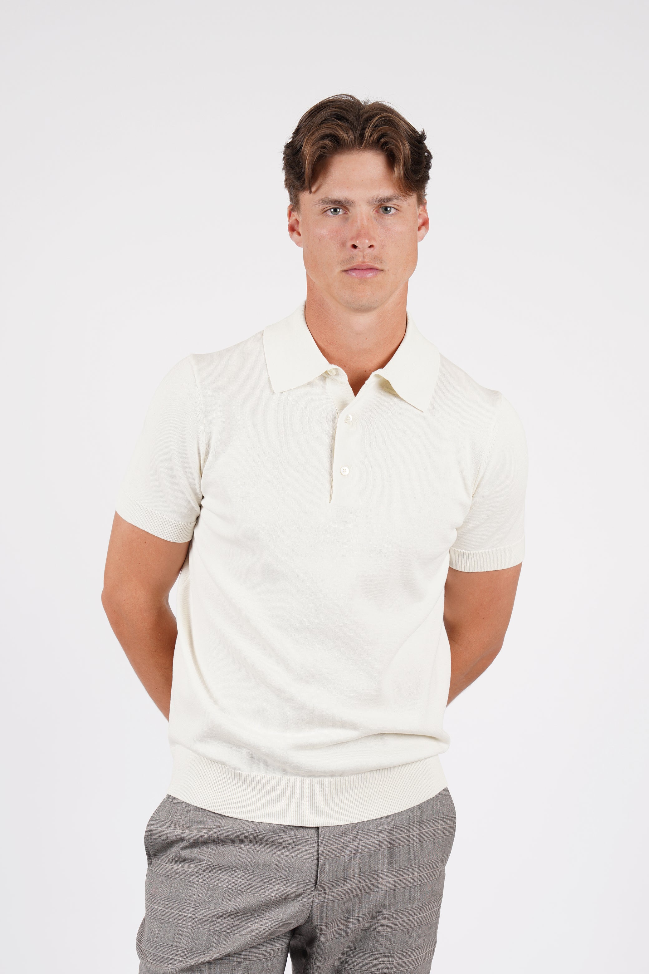 A lightweight, luxurious blend of cotton and silk, this short-sleeve polo offers a soft, breathable feel. Finished with ribbed cuffs and hem and mother-of-pearl buttons for a refined, effortless look.